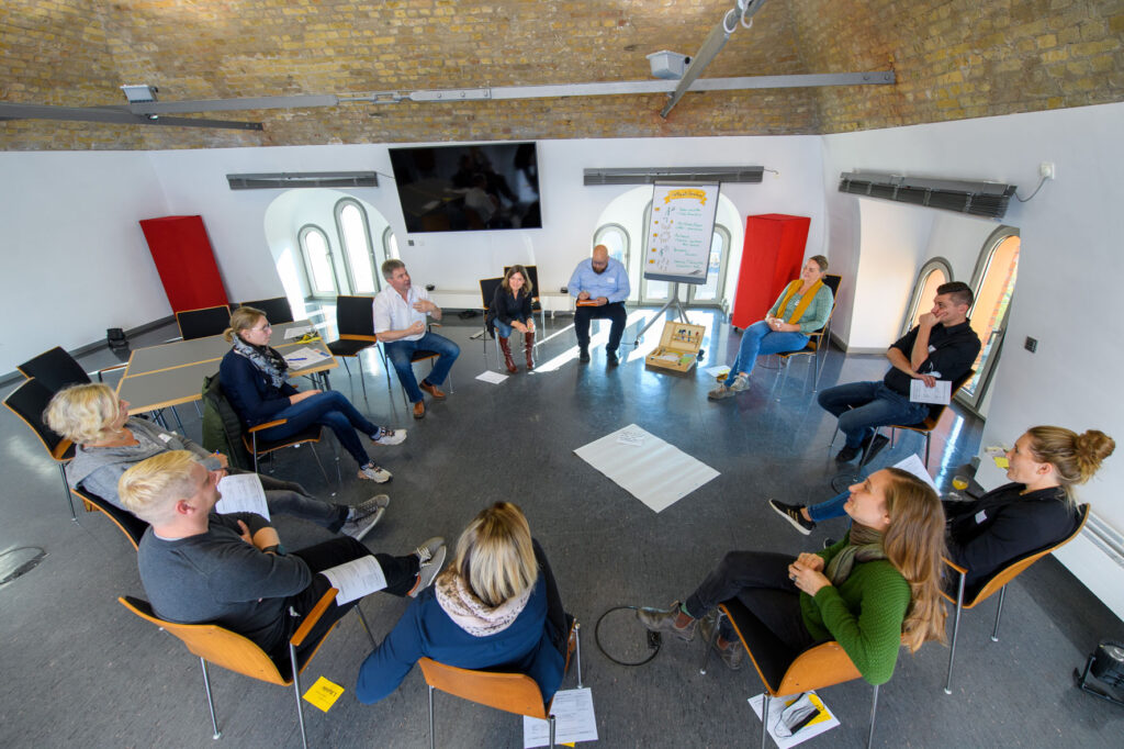 Das Thünen-Institut für Regionalentwicklung unterstützt die geförderten Netzwerke mit der Landinventur und Werkstattformaten. Die Erkenntnisse und Ideen sind Grundlage für die Weiterentwicklung der Netzwerkarbeit. Darüber hinaus dienen die Werkstätten der regionalen und überregionalen Vernetzung und dem Wissenstransfer zwischen den Aktiven. Der Wissenstransfer findet zudem auf der digitalen Datenbank Landmaschine statt, in der das wertvolle praktische Wissen der Engagierten gesammelt wird. So entsteht ein Bild der praktischen Transformation auf dem Land.