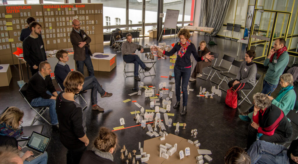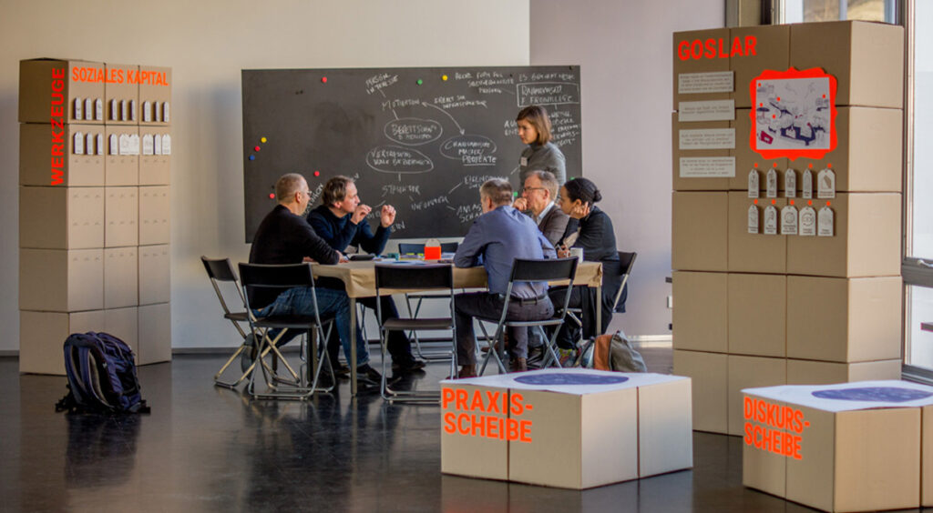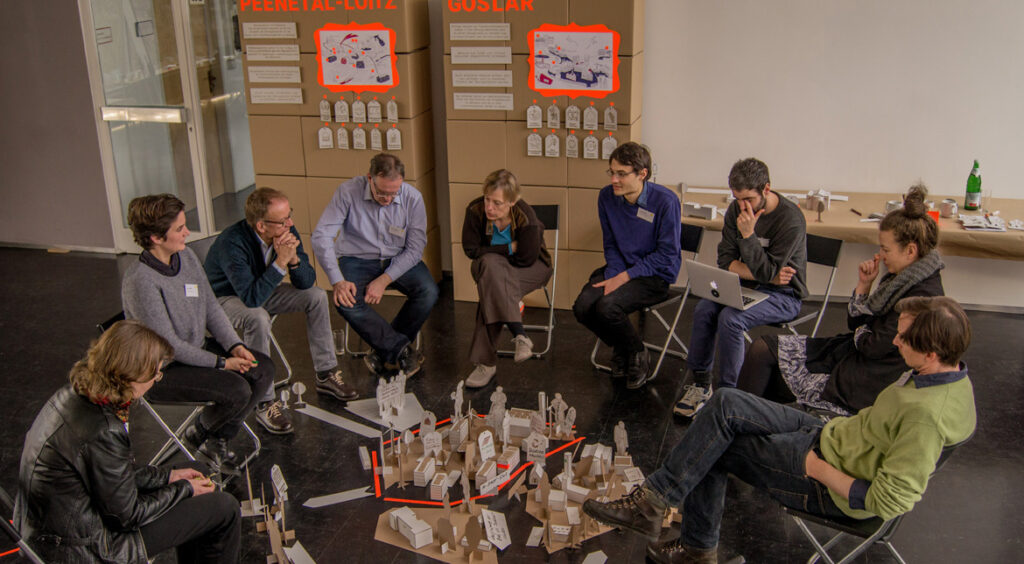 Das Projekt drehte sich um die Frage nach möglichen Strategien und Instrumenten zur Gestaltung einer Praxis der Stadtentwicklung, die sich von der Fokussierung auf die etablierten Pfade städtischen und wirtschaftlichen Wachstums löst. Es geht um Stadtentwicklung jenseits von Großinvestitionen von Unternehmen, Infrastrukturprojekten und Events. Zugleich wird nach Schnittstellen von aktueller Praxis verschiedener an der Stadtentwicklung beteiligter Akteure sowie von übergeordneten gesellschaftlichen und ökonomischen Transformationsdiskursen gesucht. Es wurden alternative Gestaltungsansätze gezeigt, mit denen es auf kommunaler Ebene gelingen kann, durch „eine Kom binatorik unterschiedlichster Technologien, politischer Interventionen und sozialer Praktiken“ (Sommer, Welzer 2014, S. 11) Handlungsspielräume in der Stadtentwicklung zu eröffnen. Dabei werden mangelnde Finanzkraft der Kommunen und – bereits einsetzend – rückläufige Fördermittel in vielen Fällen dazu führen, dass nicht über Aufwandserhöhung, sondern über eine Verlagerung von Aufwand in andere Handlungsfelder, andere Organisationsformen oder sogar über eine Reduktion von Aufwand nachgedacht werden muss. Gerade durch den Alltagsbezug des empirischen Materials aus dem Forschungsprojekt lässt sich dies eindrucksvoll darstellen. Er wird damit zu einem roten Faden des Projekts: Wie kommen die alternativen Gestaltungsansätze im Alltag an, was können sie beitragen? Besonderes Interesse galt in dem Projekt denjenigen Transformationsagenten, die auf der Suche nach Alternativen zum gängigen monetären Wachstumsmodell Schrumpfung als Chance und als Freiraum, begreifen, den sie gestalten können.